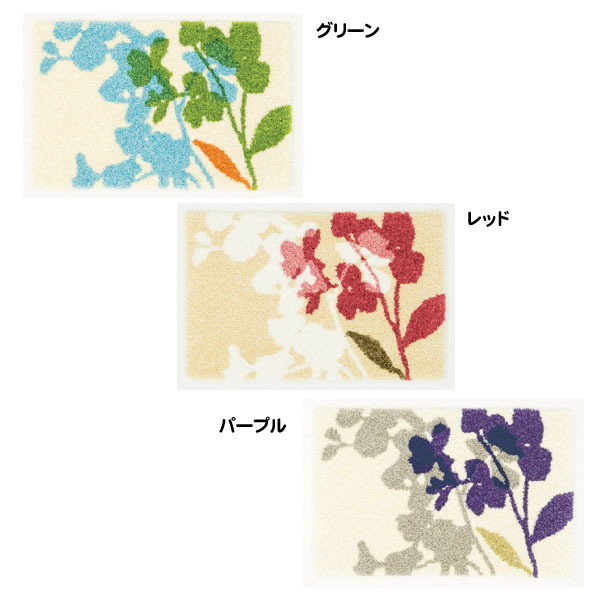 ● 爽やかで深みのある花柄のマット ●サイズ:50x80cm ●組成:ナイロン100% ・パイル長:15mm 全厚:23mm ●色 レッド グリーン パープル 何れか1点を選択 ●日本製 ●送料無料(離島・沖縄を除く) ●・防炎加工・防ダニ・滑り止め加工↓ ●防炎加工日本防炎協会の防炎性能試験に合格した製品です。